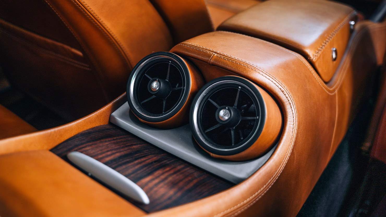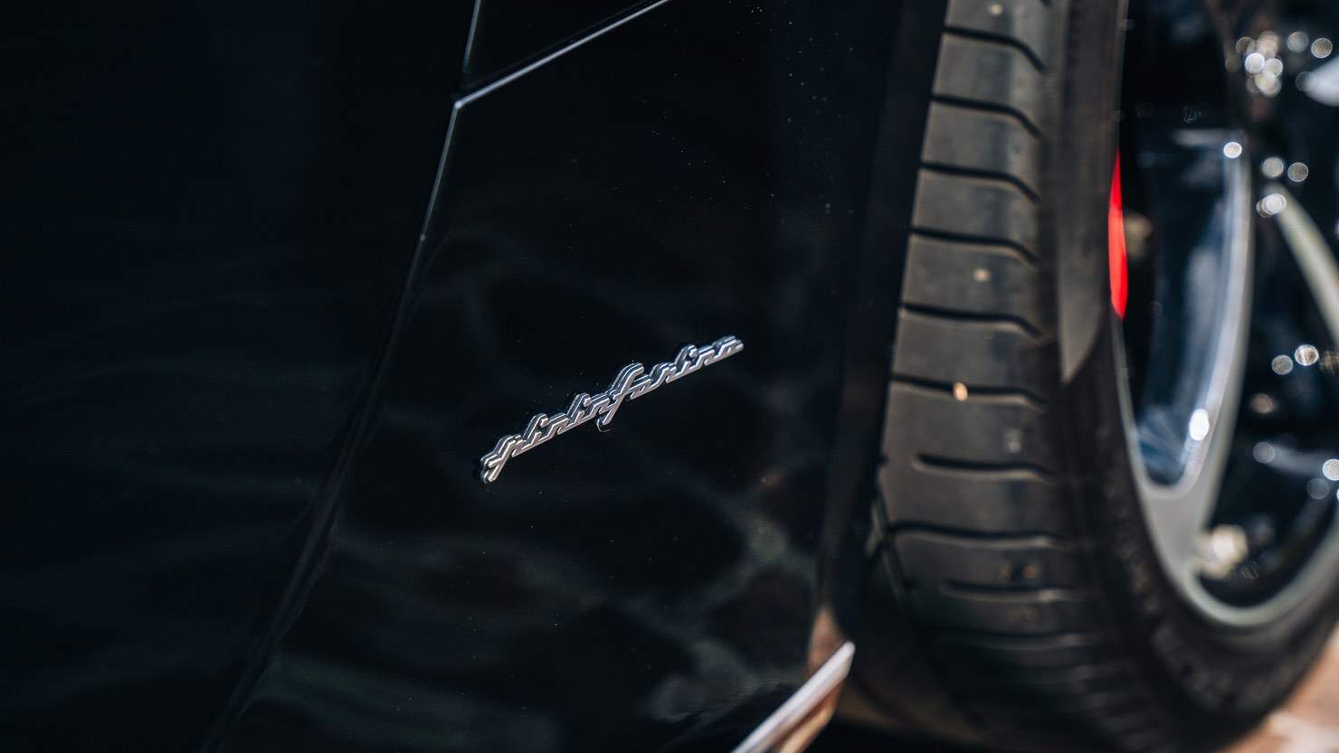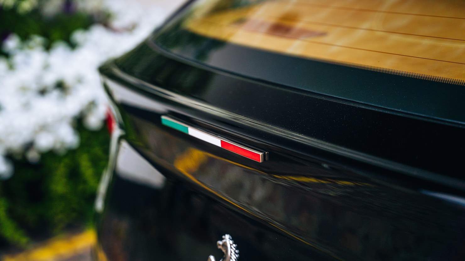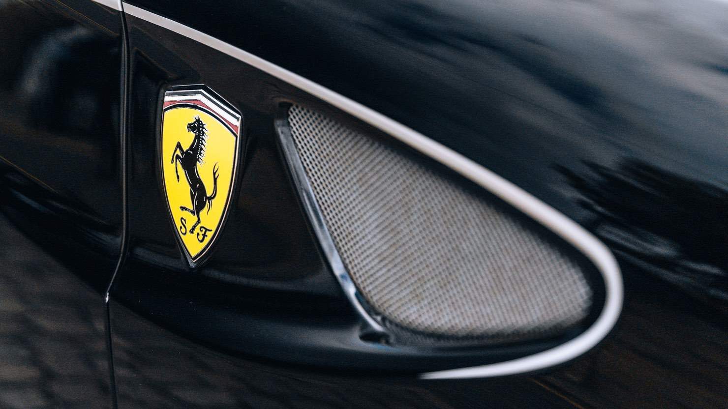 This particular car was built as a demonstration of Ferrari’s bespoke design programme and is highly specified throughout with options not available on the standard options list. This includes the 4-layer Piano Black paintwork with Grigio painted pinstriping, as well as seats inspired by the Dezza Poltrona Frau chair complimented by wood trim throughout the cabin and boot.