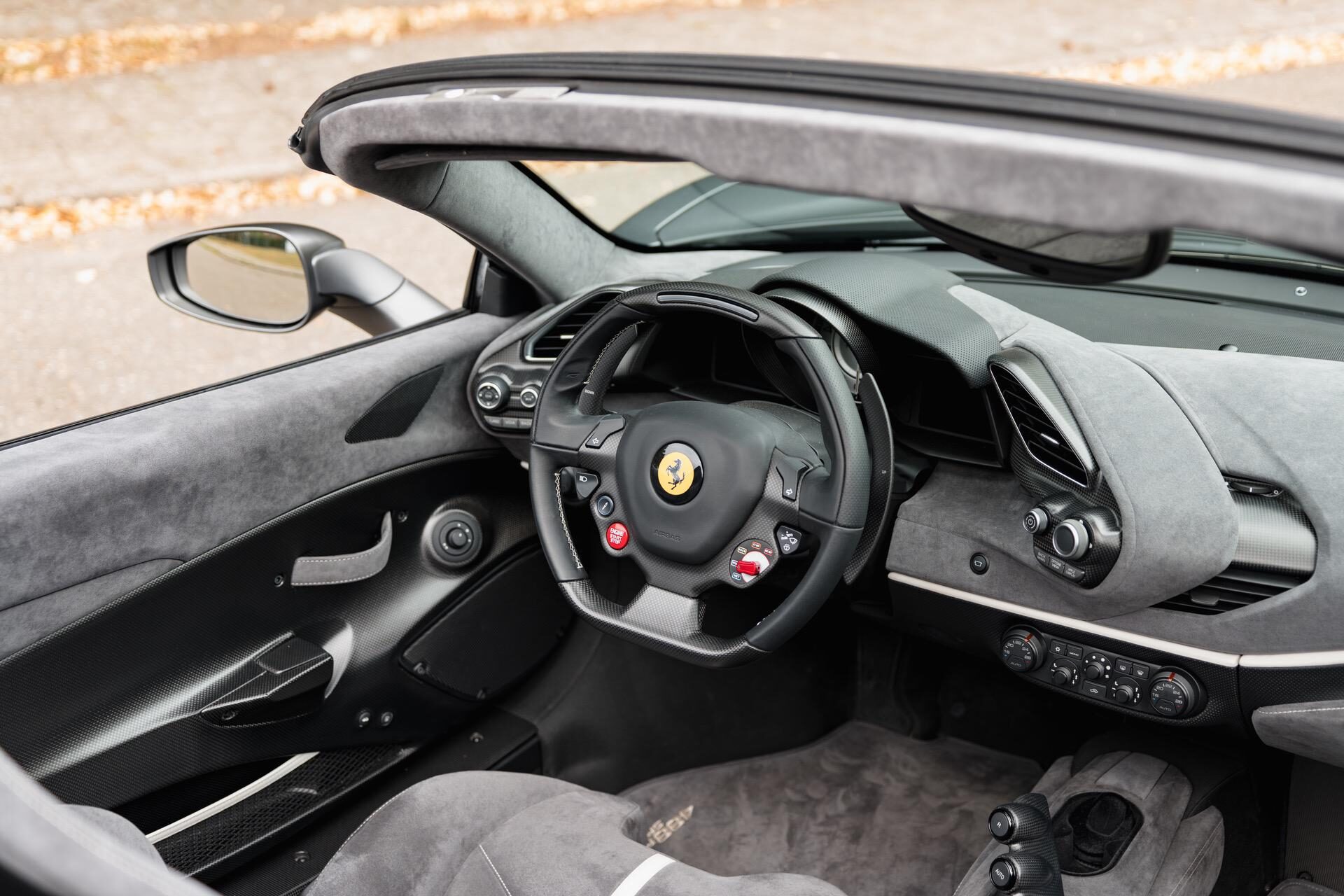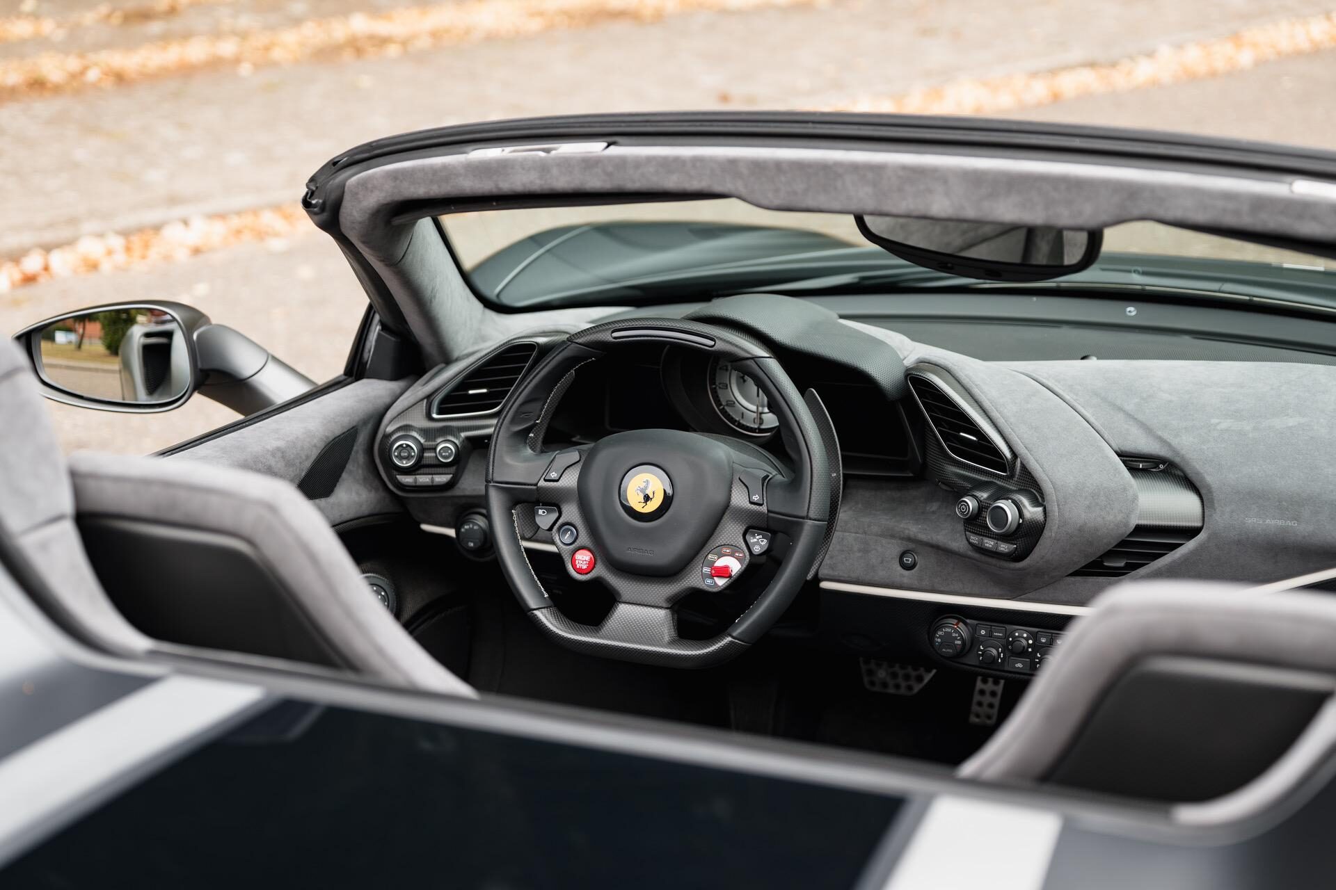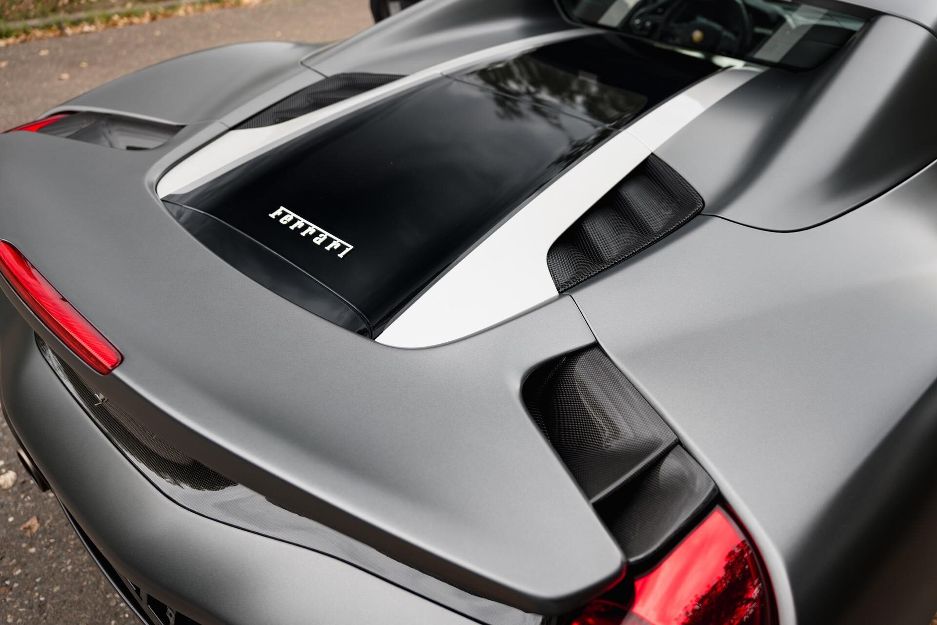 This 1-owner from new 2021 Ferrari 488 Pista Spider finished in the attractive combination of Grigio Silverstone Opaco over Charcoal Alcantara interior.